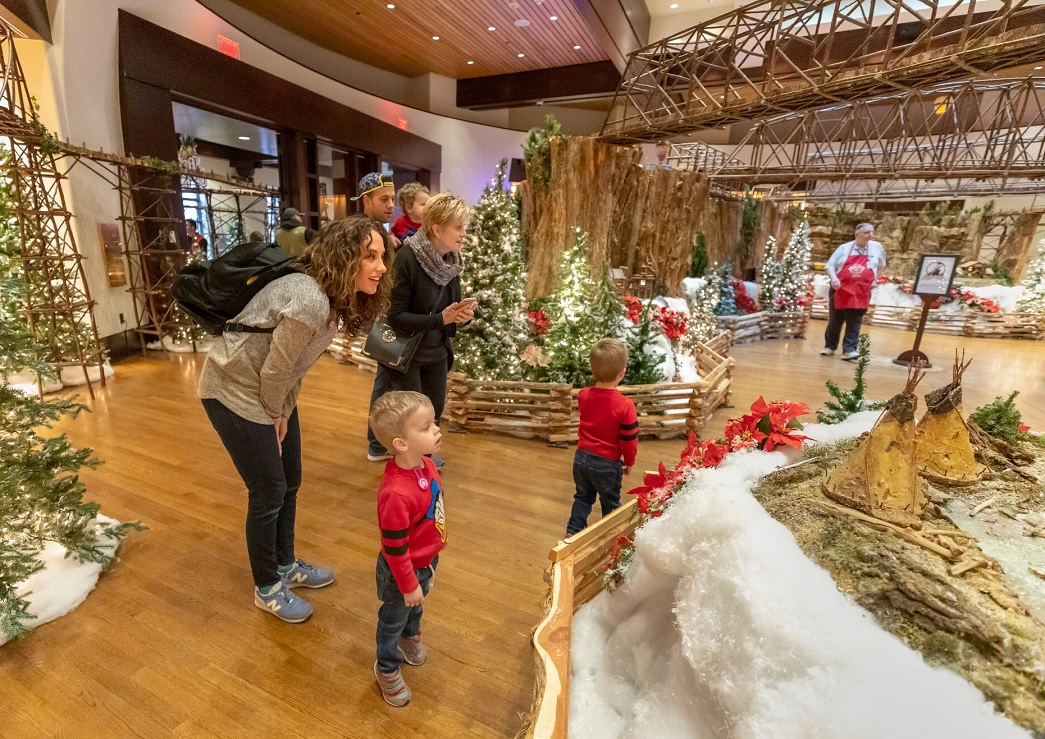 Jingle Rails: The Great Western Adventure is a G-scale model train wonderland containing nine working model trains that wind through a stunning miniature landscape. The exhibit features miniature versions of local treasures of downtown Indianapolis.